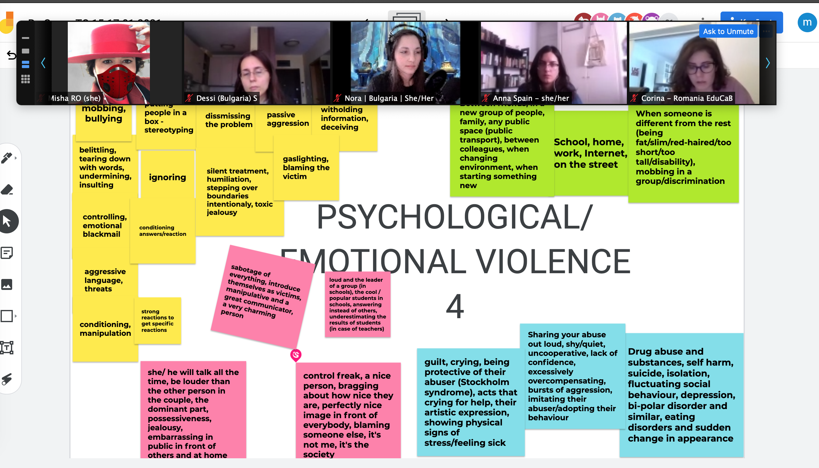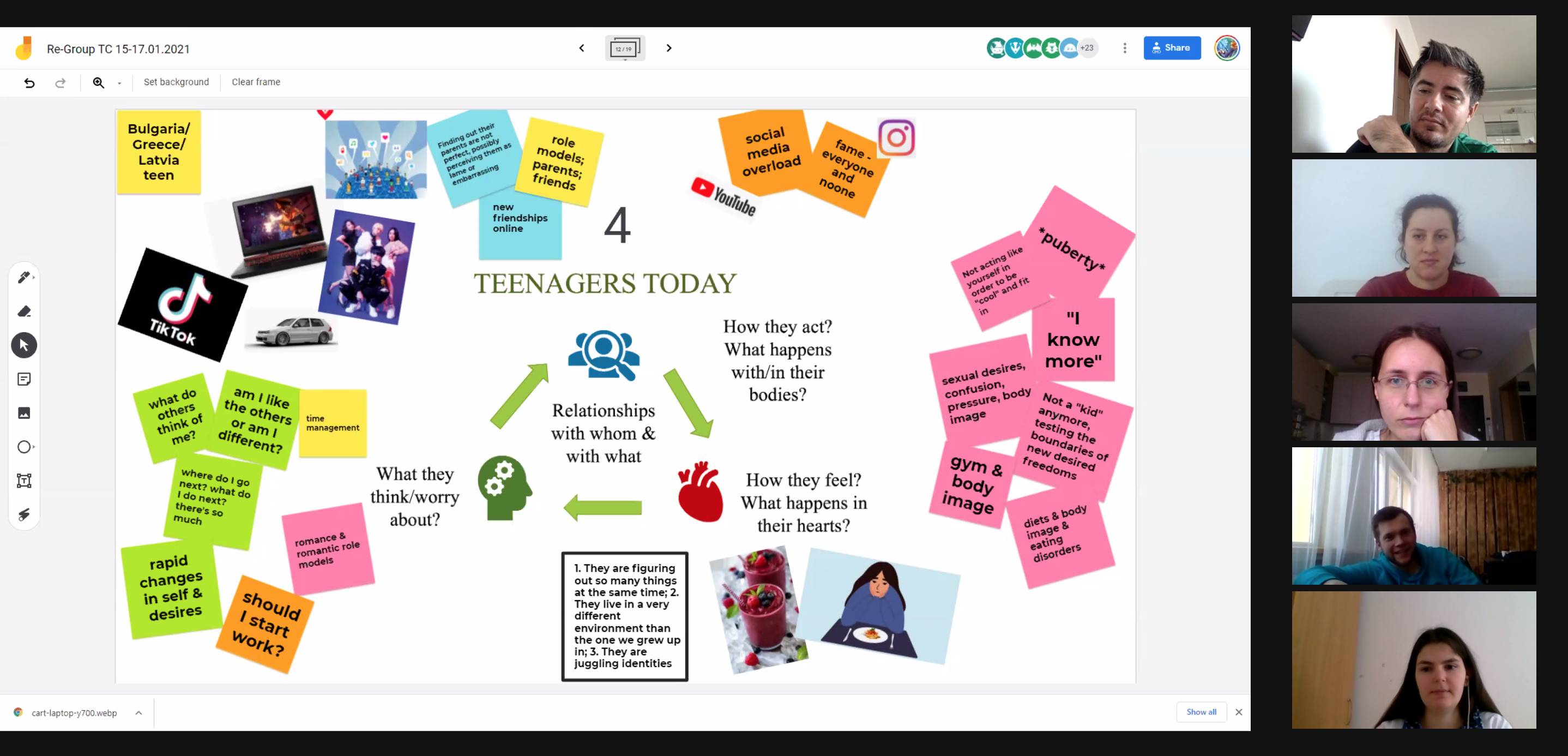 Year 2021 has started with the first activity of the project Re-GROUP. The international training course took place in Zoom platform on 15th-17th and 30th -31st of January 2021, uniting 33 youth workers, educators, social workers, librarians, and other professionals whose daily target group is youth and adolescents. Aim of the training course was to equip participants with the Youth Group methodology on violence prevention, developed by MARTA Centre. Five days were spent to repeat the basic principles of non-formal education and prevention work; study issues related to gender, stereotypes, and prejudices; learn about the types, manifestations, and characteristics of violence; experience methods for working with young people on (un)healthy relationships, addictions, sexuality, human trafficking and pornography, bullying, conflict resolution and emotion management. The training course was concluded by the topics of creation, leadership, and involvement of youth groups, leaving the training with the concrete to-do list on “how to start my youth group”.