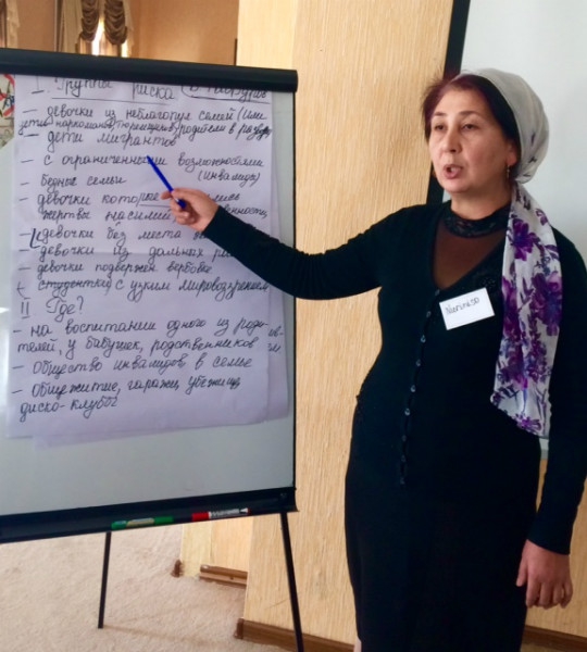Aicinājums runāt atklāti iedrošināja semināra dalībnieces Tadžikistānā runāt par pieaugošo pašnāvību skaitu tieši meiteņu pusaudžu vidū un to, ka katra trešā meitene līdz pilngadības sasniegšanai Tadžikistānā tiek izprecināta, kaut formāli likums to aizliedz un paredz simbolisku sodu (120 somoni), kas visbiežāk jau ir iekļauts kāzu izdevumos. Bieži nepilngadīgo meiteņu izprecināšana notiek sasteigti un tam par iemeslu var kļūt visneloģiskākie iemesli, piemēram, slima vecmāmiņa, kura grib redzēt mazmeitas kāzas. Reliģiskie līderi novada ceremoniju, ar kuru saskaņā meitene kļūst par sievu, bet, pārkāpjot likumu, laulība netiek reģistrēta oficiāli un meitenes zaudē jebkādas tiesības, šķiršanās gadījumā paliekot bez iztikas. Centienā ierobežot agrīno laulību slēgšanu, ir izdots rīkojums uzskaitīt visus valstī praktizējošos mullas, tādējādi radot nosacītu kontroli, kas pagaidām nav nesis vērā ņemamu uzlabojumu.