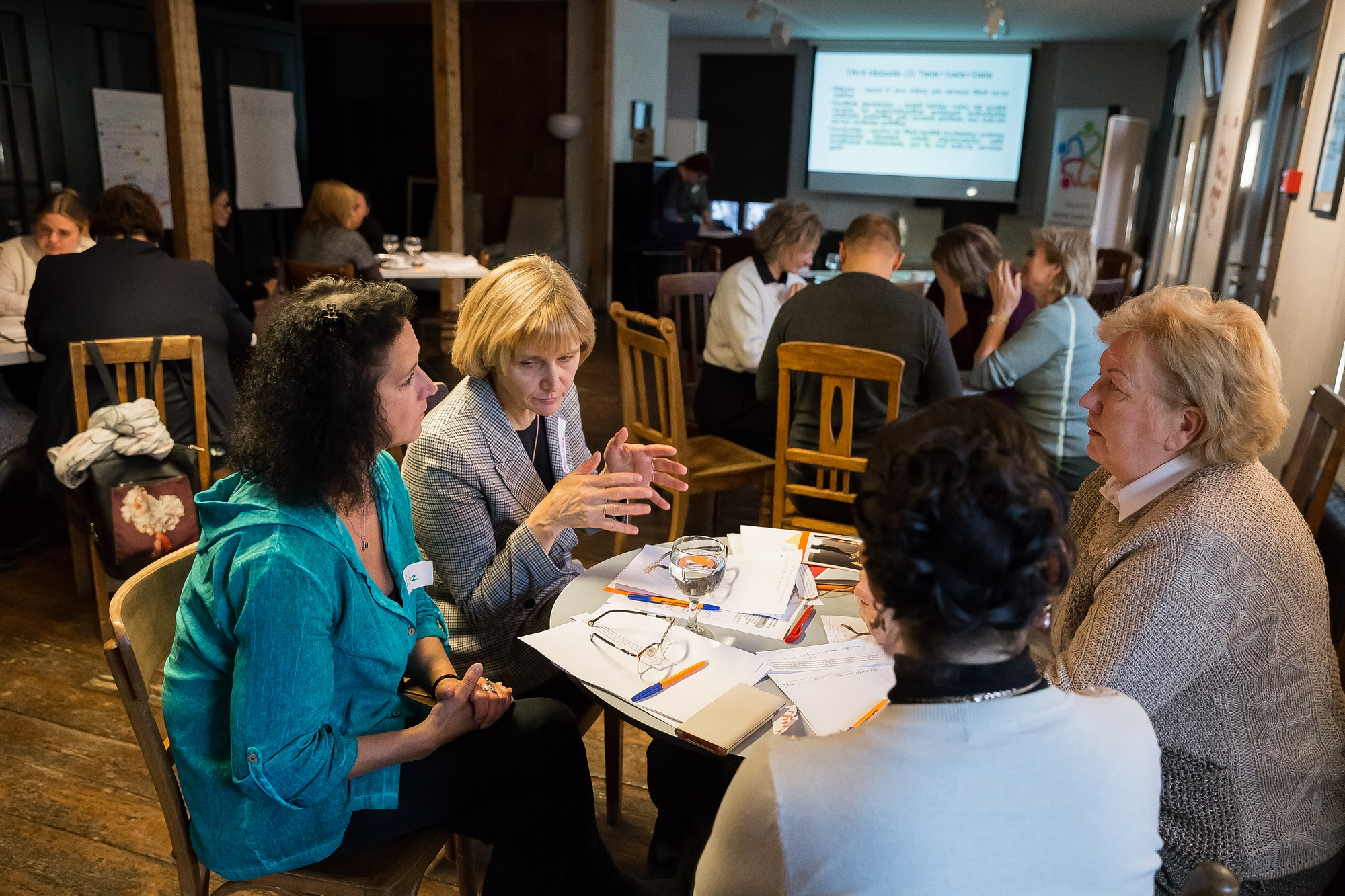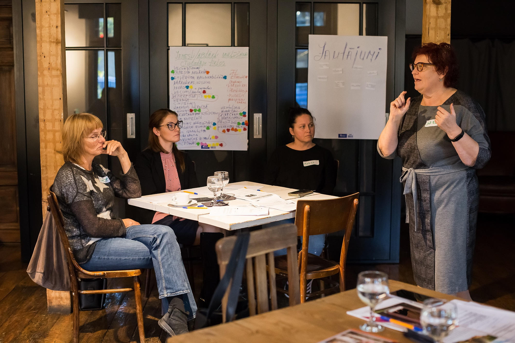 Darbnīcas telpas kļuva par savdabīgu sadarbības problēmu risināšanas laboratoriju: dalībnieki grupās risināja konkrētas situācijas, kurās ar vairāku – sociālo pakalpojumu, veselības aprūpes, tiesībsargājošo un citu – iestāžu resursiem modelēja vislabākos risinājumus cilvēku tirdzniecībā cietušu personu rehabilitācijai.